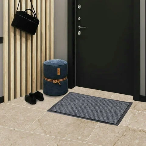 Нескользящая основа не дает влаге проникнуть на пол, предотвращает скольжение и возможные травмы при падении. Ворсовое покрытие с ребристой текстурой удерживает влагу и грязь. Размер - 40х60 см. Толщина - 7 мм. Ворс изготовлен из 100% полиэстера. Коврик выполнен в сером цвете.