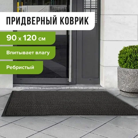 Коврик придверный Laima влаго-грязезащитный, ворсовое покрытие, 90х120см, черный