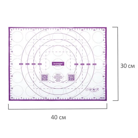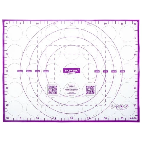 Коврик силиконовый для раскатки/запекания 30х40 см, фиолетовый, DASWERK, 608423