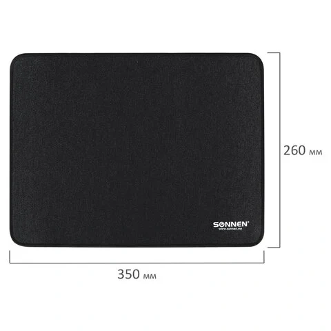 Коврик для мыши SONNEN 'BLACK', резина + ткань, 220х180х3 мм, 513309