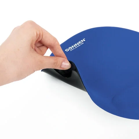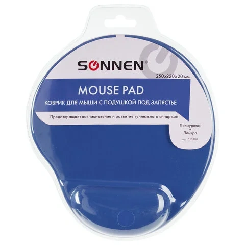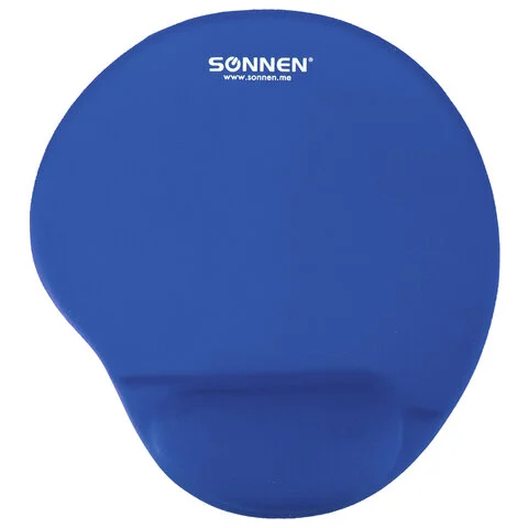 Коврик для мыши с подушкой под запястье SONNEN, полиуретан + лайкра, 250х220х20 мм, синий, 513300