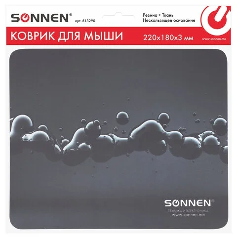Коврик для мыши SONNEN 'DROPS', резина + ткань, 220х180х3 мм, 513290