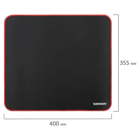 Коврик для мыши SONNEN 'RED', резина + ткань, 220х180х3 мм, 513306