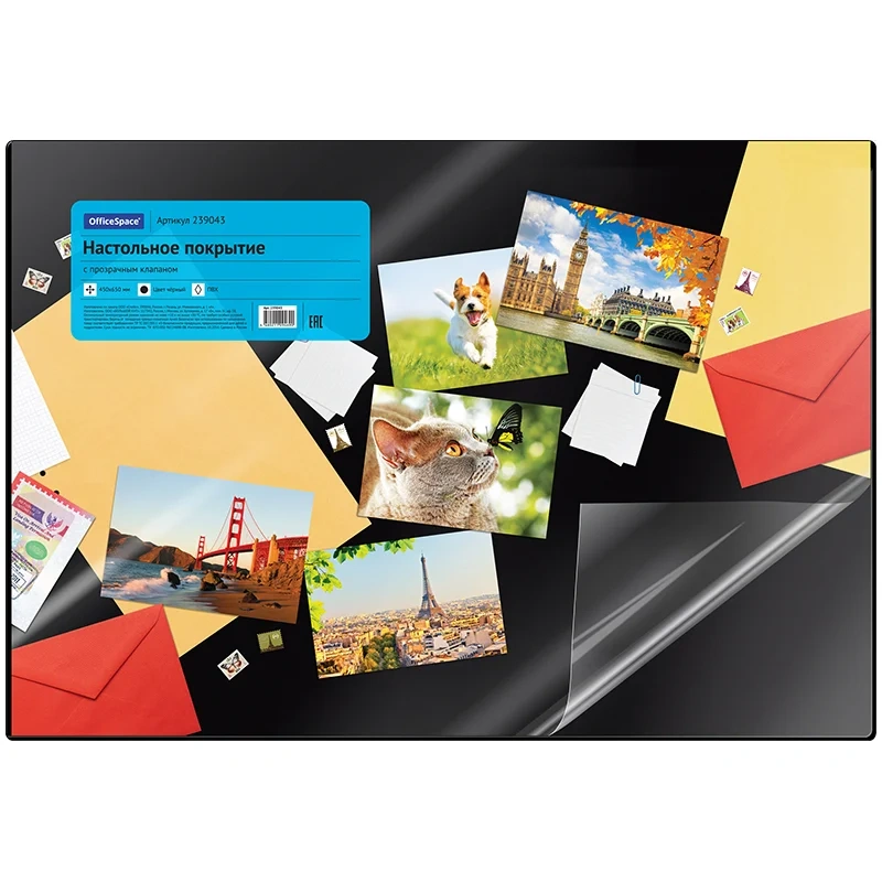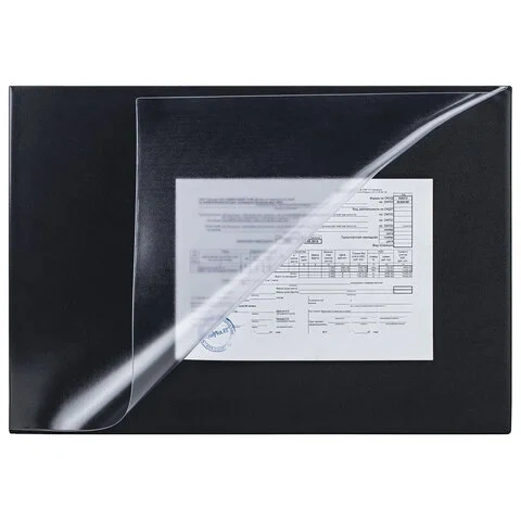 Коврик настольный для письма Brauberg 650х450мм, черный, прозрачный карман