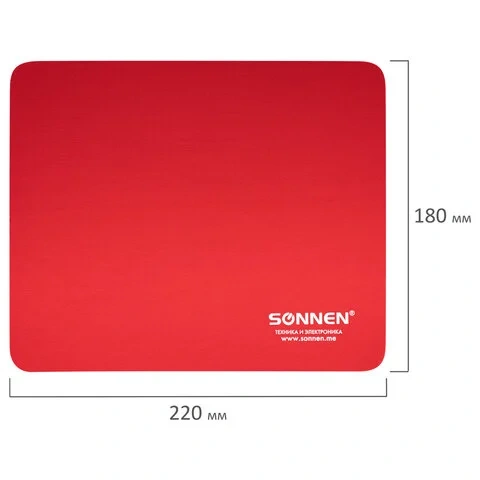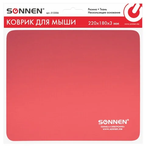 Коврик для мыши SONNEN 'RED', резина + ткань, 220х180х3 мм, 513306