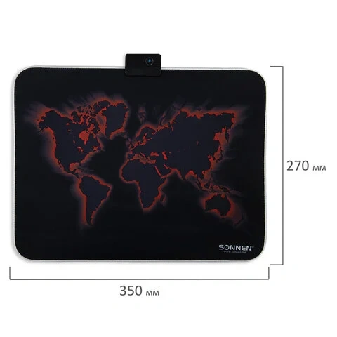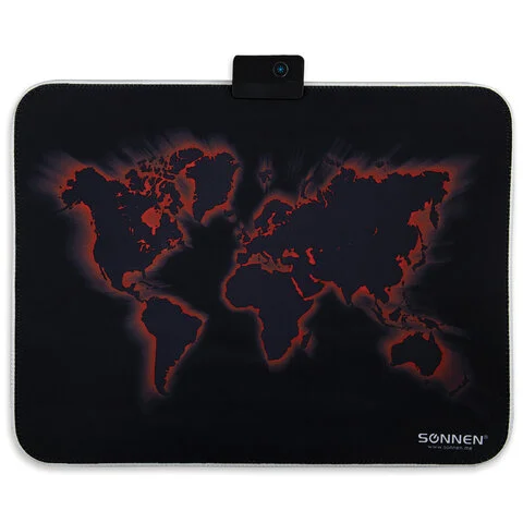 Коврик для мыши игровой с подсветкой SONNEN 'LIGHTING', резина+ткань, 350х270х4 мм, чёрный, 513316