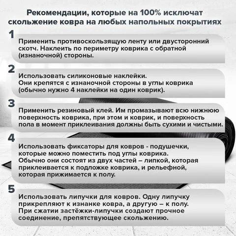 Нескользящая основа не дает влаге проникнуть на пол, предотвращает скольжение и возможные травмы при падении. Ворсовое покрытие удерживает влагу и грязь.