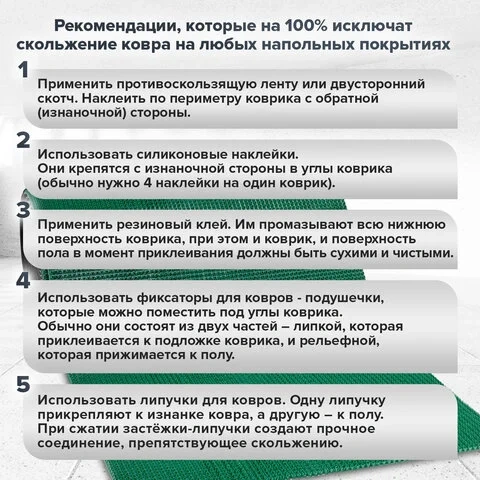 Рекомендуется фиксировать коврик на полу с помощью дюбелей и саморезов, особенно если есть стыки.
