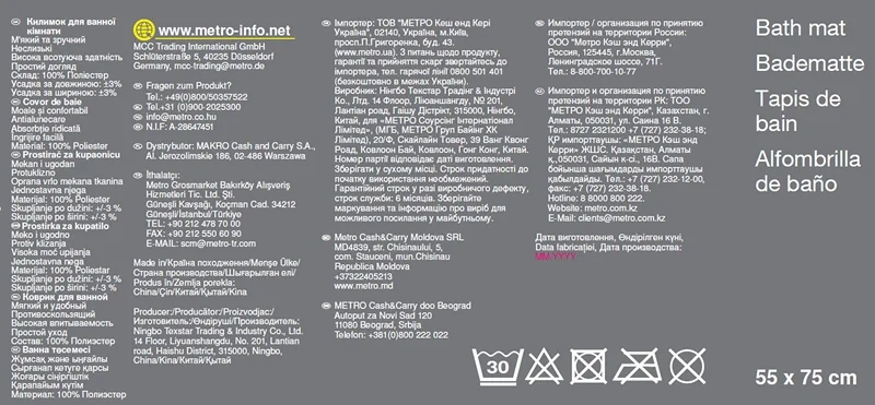 Tarrington House Коврик для ванной белый из полиэстера, 55 x 75см идеально подходит для ванной комна...