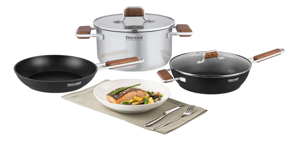 Скандинавский стиль с его разумным минимализмом и безупречной функциональностью сегодня на пике популярности. Потому дизайнеры R?ndell создали коллекцию Fjord, в состав которой входят сковороды, вок и сотейник из кованого алюминия, а также ковш и две кастрюли из нержавеющей стали. Строгий, гармоничный внешний вид посуды сразу же приковывает к себе внимание. Да и пользоваться ею очень удобно и безопасно благодаря бакелитовым вставкам на ручках. Тройное вштампованное, а затем вплавленное дно без воздушных полостей ковша и кастрюль гарантирует быстрый прогрев всей поверхности и идеальное приготовление любых блюд. Сковороды, вок и сотейник, изготовленные из кованого алюминия, который известен своей высокой теплопроводностью, имеют прочное внутреннее двухслойное антипригарное покрытие Xylan Plus, безопасное и экологичное. Для вока и сотейника предусмотрены крышки из термостойкого стекла с отверстиями для выхода пара: их плоская форма способствует экономии места при хранении. Предметы коллекции подходят для всех видов плит, включая индукционные.