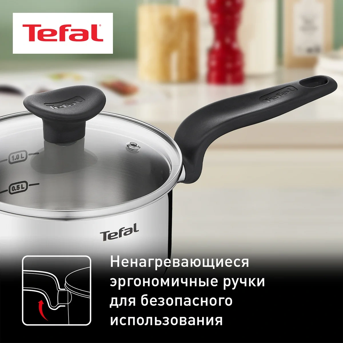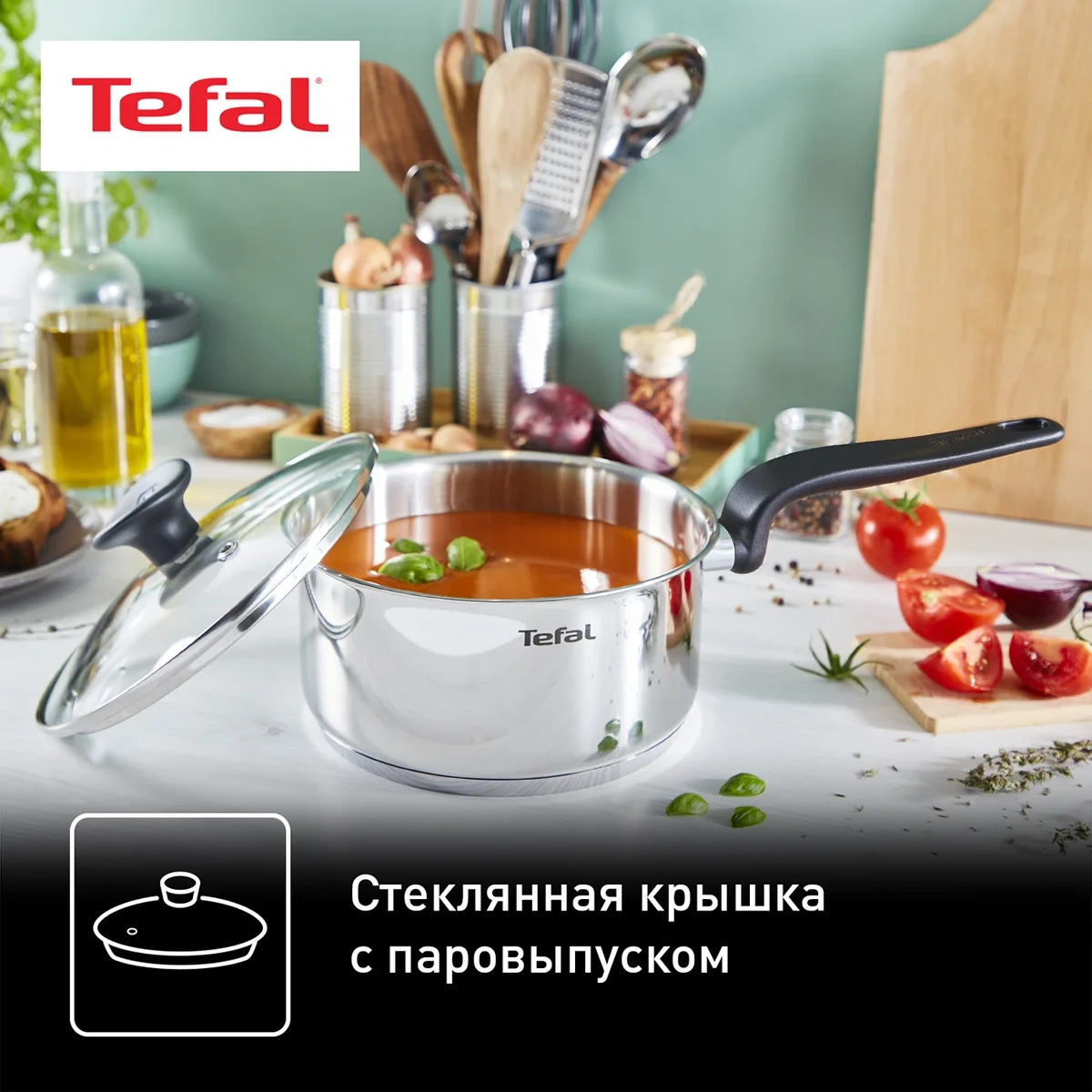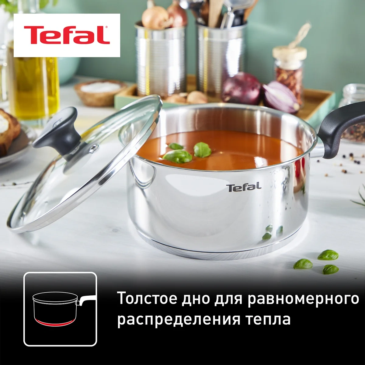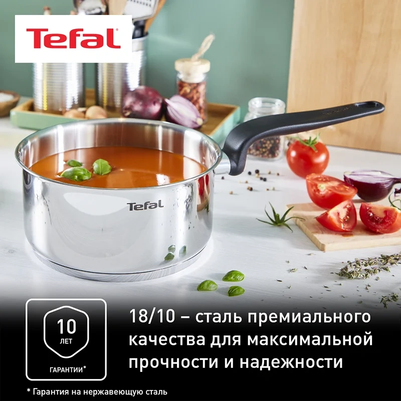 С Tefal Primary вам не придется беспокоиться о результате - с этим ковшом любое блюдо получится невероятно вкусным, а процесс приготовления станет простым и приятным. Осваивайте новые рецепты благодаря эргономичному дизайну: на внутренней поверхности стенки расположена удобная мерная шкала, края оснащены носиками для слива жидкости без брызг, а элегантная стеклянная крышка с паровыпуском позволяет наблюдать за процессом и сохраняет сочность каждого блюда. Ковш выполнен из долговечной нержавеющей стали сплава 18/10 и защищен 10-летнией гарантией качества. Эргономичная ручка не нагревается и обеспечивает комфортное и безопасное использование день за днем. Готовьте все, что вы любите - от спагетти болоньезе и густых соусов для гарниров до потрясающих домашних десертов и многого другого. Посуда Tefal Primary станет вашим незаменимым помощником в приготовлении вкусных блюд каждый день.