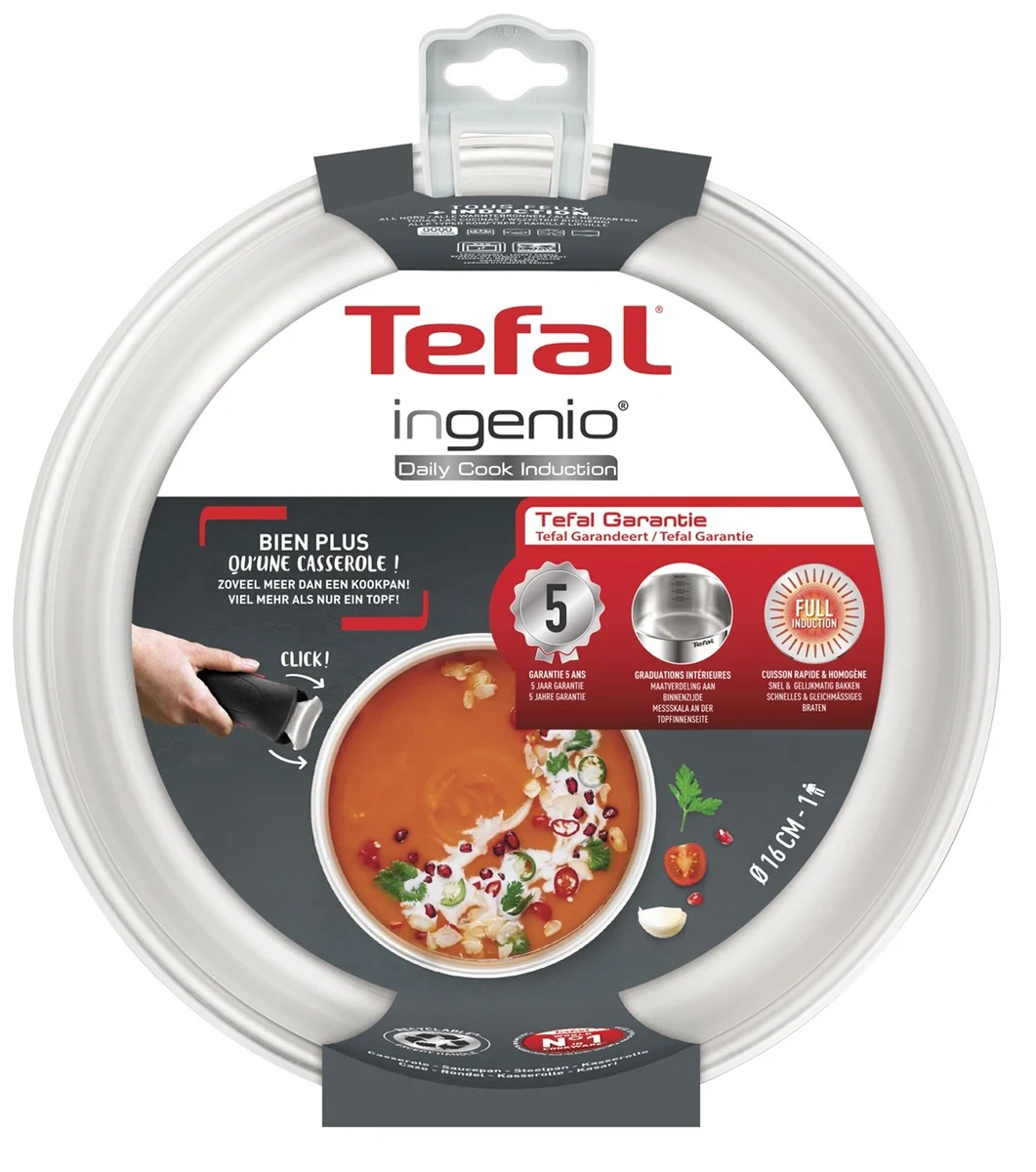 Упростите повседневную готовку с кастрюлями и сковородами Tefal Ingenio со съемными ручками! Их система штабелирования позволяет экономить место в шкафу. Даже организовать время приема пищи становится проще, поскольку вы можете использовать одну кастрюлю для приготовления, разогрева и хранения остатков в холодильнике. Серия Ingenio Daily Cook была разработана, чтобы повысить удовольствие от приготовления пищи благодаря своему модному и элегантному внешнему виду. Кастрюля изготовлена из высококачественной нержавеющей стали, имеет гарантию 5 лет и толстое алюминиевое дно, обеспечивающее равномерное приготовление блюд. Произведен из нержавеющей стали премиального качества. Прочное покрытие устойчиво к механическим повреждениям и появлению царапин на поверхности. Утолщенное дно обеспечивает быстрый и равномерный нагрев посуды по всей площади. На внутренней стенке расположена крупная мерная шкала для точного дозирования необходимого количества жидких ингредиентов. Ковш подходит для всех типов плит, а также для использования в духовом шкафу.