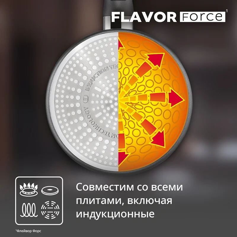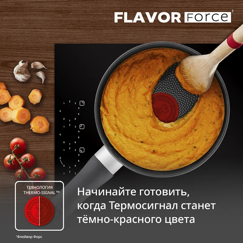 Ковш серии Flavor Force от Tefal гарантирует вам непревзойденный результат приготовления каждого блюда. Его долговечное антипригарное покрытие позволяет готовить с комфортом и легко чистится, а корпус из кованого алюминия равномерно распределяет тепло, улучшая вкус и текстуру блюд. Благодаря технологии Tefal Thermo-Signal и стеклянной крышке этот ковш идеально подходит для приготовления любых блюд, от курицы по-провансальски до сочного рыбного рагу. Он совместим со всеми видами плит, включая индукционные.