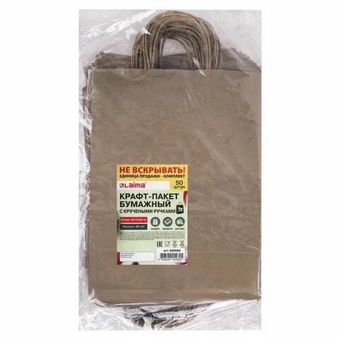 Отзывы о «Крафт-пакет бумажный 26х15х35 см, КОМПЛЕКТ 50 шт., крученые ручки, плотность 90 г/м2, LAIMA ECO CRAF»