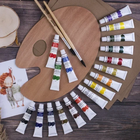 Предназначены для живописи и декоративных работ. Легко наносятся практически на любую поверхность. Яркие и насыщенные цвета. Быстрое высыхание без изменения цвета. Отличная укрывистость и светостойкость. Разбавляются водой. Характеристики 18 цветов. В алюминиевых тубах по 12 мл. Состав набора: белила титановые (044), лимонная желтая (021), желтая средняя (023), охра желтая (029), красная светлая (003), киноварь (006), оранжево-желтая (026), красная темная (001), травяная зеленая (066), виридоновая зеленая (067), зеленая 'ФЦ' (072), ультрамарин (033), церулеум (036), голубая 'ФЦ' (039), фиолетовая средняя (095), сиена жженая (082), умбра жженая (084), черная (051). Европодвес. Не токсичны. Не имеют неприятного резкого запаха. Оттенок краски на фото может незначительно отличаться от фактического. Артикул производителя: 191126. Штрих-код: 4606224144238. Производитель: Китай.
