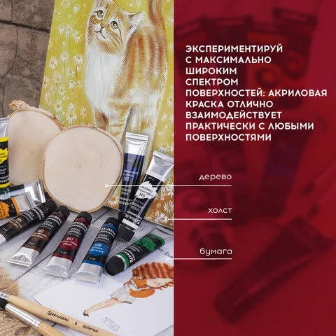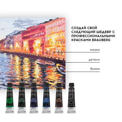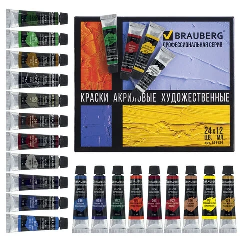 Краска акриловая художественная Brauberg профессиональная серия 24 цвета по 12мл, в тубах