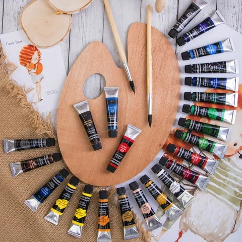 Профессиональная серия. Предназначены для живописи и декоративных работ. Легко наносятся практически на любую поверхность. Яркие и насыщенные цвета. Быстрое высыхание без изменения цвета. Отличная укрывистость и светостойкость. Разбавляются водой. Характеристики 24 цвета. В алюминиевых тубах по 12 мл. Состав набора: белила титановые (044), телесная (046), лимонная желтая (021), желтая средняя (023), охра желтая (029), красная светлая (003), киноварь (006), оранжево-желтая (026), красная темная (001), зеленая светлая (062), зеленая средняя (063), зеленая 'ФЦ' (072), травяная зеленая (066), ультрамарин (033), церулеум (036), кобальт синий (038), голубая 'ФЦ' (039), фиолетовая темная (091), серебристая (142), золотистая (144), сиена жженая (082), умбра жженая (084), серая (055), черная (051). Не токсичны. Не имеют неприятного резкого запаха. Оттенок краски на фото может незначительно отличаться от фактического. Артикул производителя: 191124. Штрих-код: 4606224144214. Производитель: Китай.