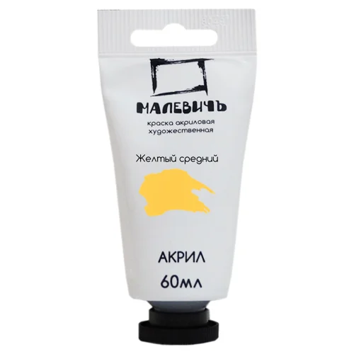 Краска акриловая художественная Малевичъ желтая, средняя, туба 60мл