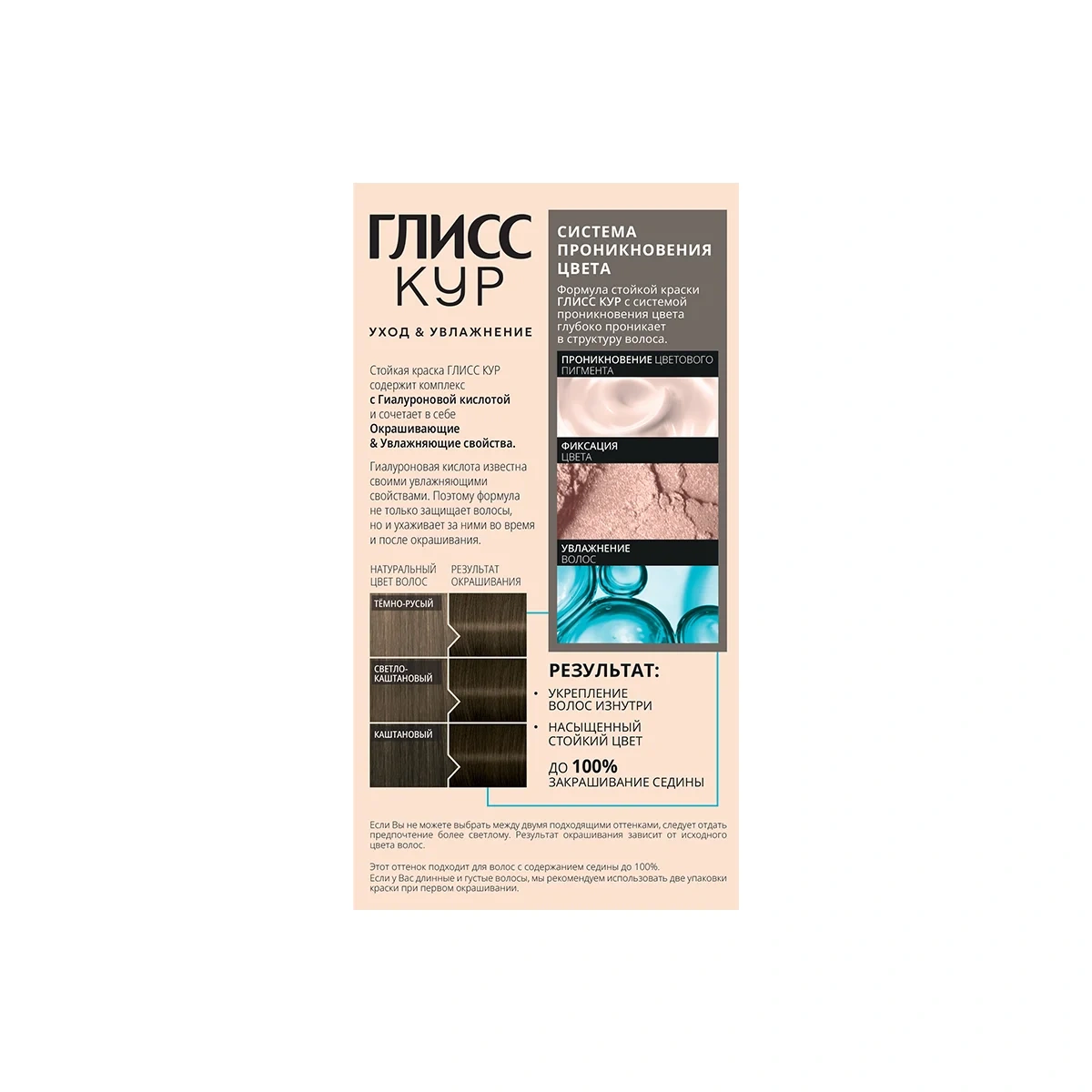 Краска для волос Глисс Кур Уход и Увлажнение 6-0 Светло-каштановый, 110г