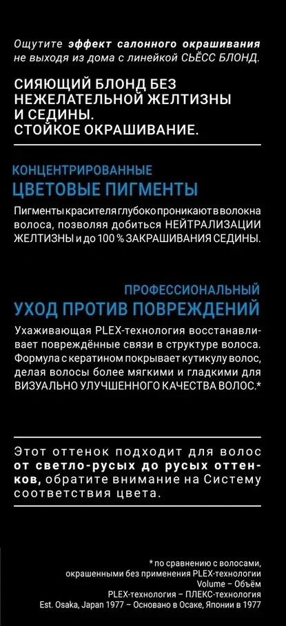 Стойкая крем-краска для волос Сьёсс - это профессиональное окрашивание, доступное для использования дома. Концентрированные цветовые пигменты глубоко проникают в волокна волоса, а система против повреждений с ухаживающей Plex-технологией профессионально восстанавливает структурные связи волоса. Формула с кератином покрывает кутикулу волос, делая их более мягкими и гладкими. Это профессиональное окрашивание, доступное для использования дома. Концентрированные цветовые пигменты глубоко проникают в волокна волоса, обеспечивая интенсивность цвета до 10 недель и 100% закрашивание седины. Система против повреждений с ухаживающей plex-технологией профессионально восстанавливает структурные связи волоса, сокращая ломкость до 80%. Формула с кератином покрывает кутикулу волос, делая их более мягкими и гладкими.