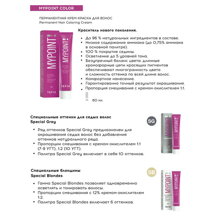 Краска для волос Tefia My Point 10.17 экстра светлый блондин пепельно-фиолетовы, 60мл