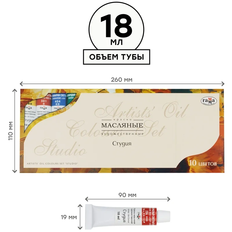Краска масляная художественная Гамма Студия 10 цветов по 18мл