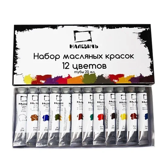 Краска масляная художественная Малевичъ 12цветов по 20мл