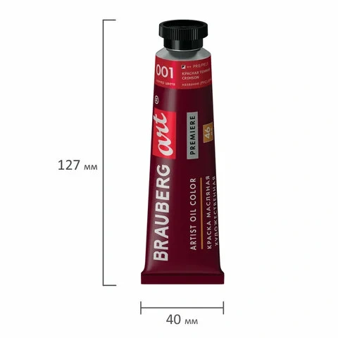 Краска масляная художественная BRAUBERG ART PREMIERE, 46 мл, профессиональная серия, КРАСНАЯ ТЕМНАЯ,