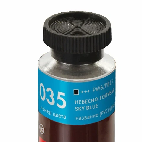 Краска имеет 5 степеней затирки пигмента. Вязкая текстура краски обеспечивает сохранение ее эластичности в течение длительного времени. Все краски легко смешиваются между собой. Объем тубы - 46 мл. Цвет - небесно-голубой.