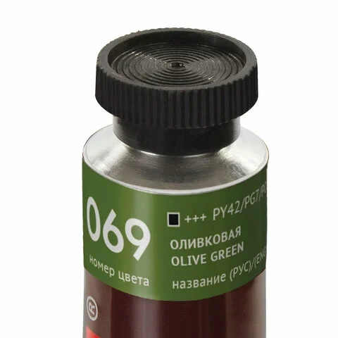 Краска имеет 5 степеней затирки пигмента. Вязкая текстура краски обеспечивает сохранение ее эластичности в течение длительного времени. Все краски легко смешиваются между собой. Объем тубы - 46 мл. Цвет - оливковый.