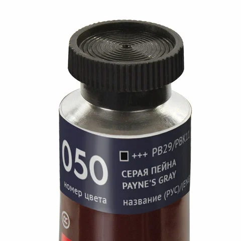 Краска имеет 5 степеней затирки пигмента. Вязкая текстура краски обеспечивает сохранение ее эластичности в течение длительного времени. Все краски легко смешиваются между собой. Объем тубы - 46 мл. Цвет - серая пейна.