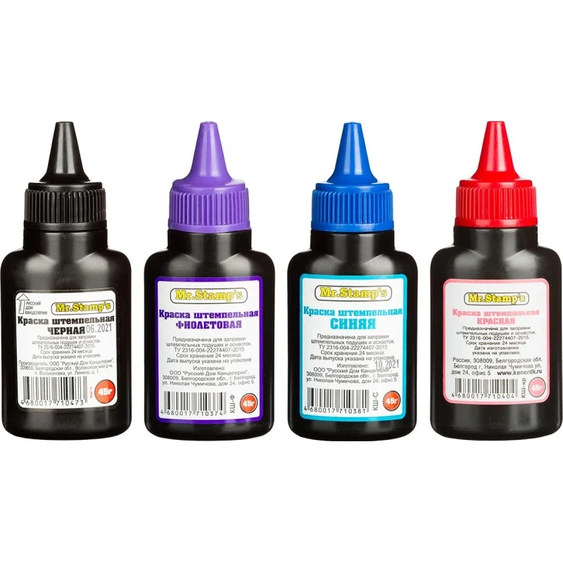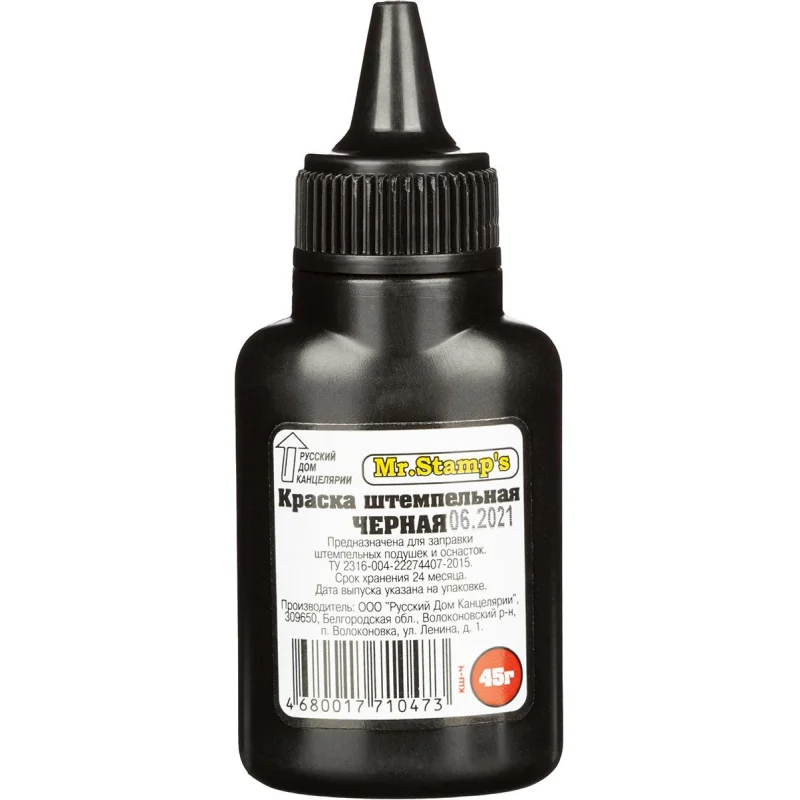 Краска штемпельная РДК на водной основе. Флакон объемом 45 г. Цвет черный. Флакон снабжен дозатором, обеспечивающим равномерное нанесение краски на подушку.