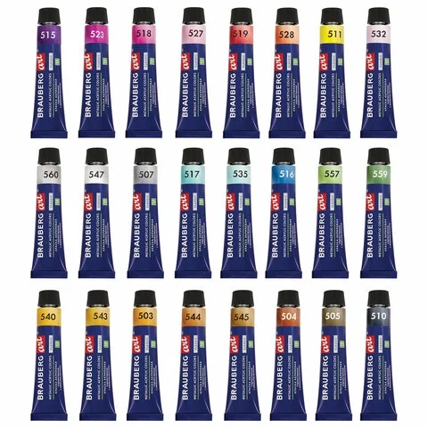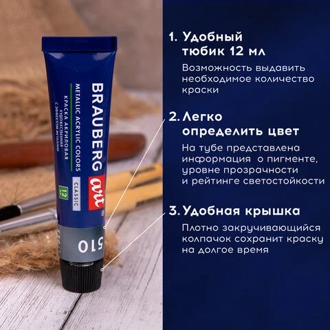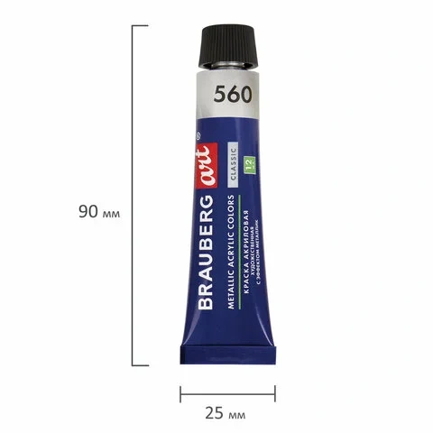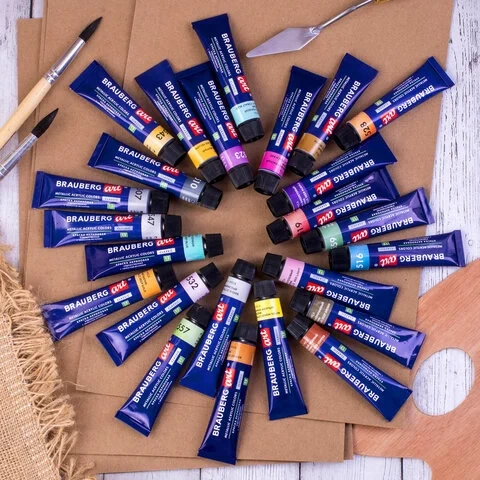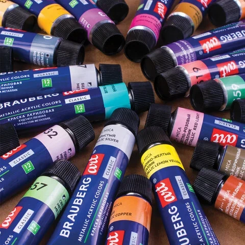 Краски акриловые художественные 'металлик' BRAUBERG ART CLASSIC, НАБОР 24 шт., в тубах 12 мл, 191720
