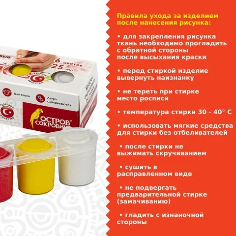 -для закрепления рисунка ткань необходимо прогладить с обратной стороны после высыхания краски;