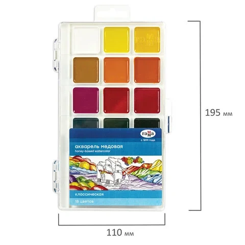 Краски акварельные ГАММА 'Классическая', 18 цветов, медовая, без кисти, пластиковый корпус, европодв