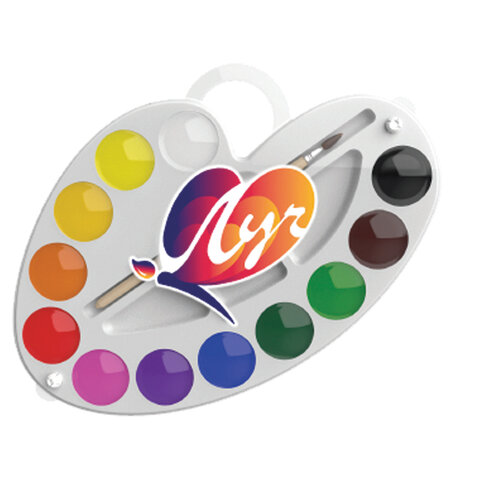 Краски акварельные ЛУЧ 'Палитра', 12 цветов, медовые, с кистью, пластиковая коробка, 29С 1761-08