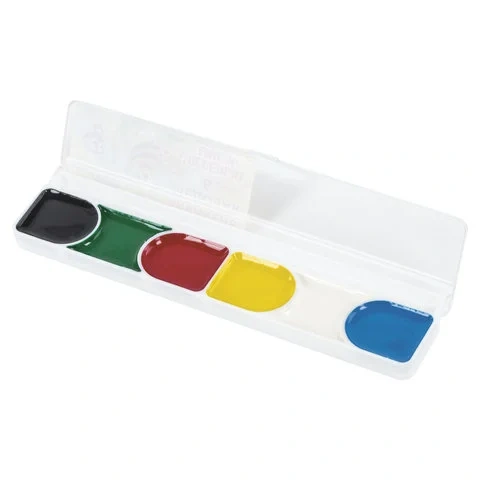 6 ярких насыщенных цветов отлично смешиваются между собой и позволяют создать множество оттенков, обеспечивают однородное окрашивание. Краски быстро высыхают и не портятся со временем. Безопасны для детей, нетоксичны. Выпускаются в пластиковом пенале с прозрачной крышкой, фигурной формой кювет и отделением для кисточки. Упаковка обладает компактными размерами и легким весом.