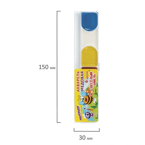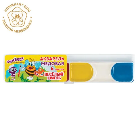 Краски акварельные ЮНЛАНДИЯ 'ВЕСЁЛЫЙ ШМЕЛЬ', медовые, 6 цветов, КЛАССИЧЕСКИЕ, пластик, 191321