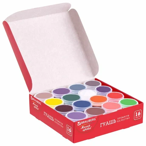 Гуашь BRAUBERG 'МАГИЯ ЦВЕТА', 16 цветов по 20 мл, без кисти, картонная упаковка, 191334
