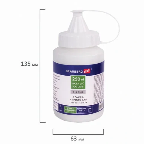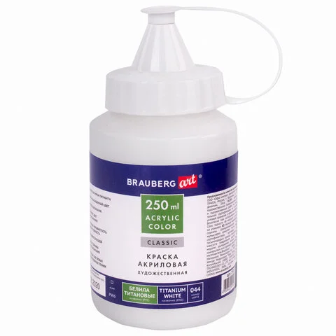 Краска акриловая художественная Brauberg белила титановая, флакон 250мл