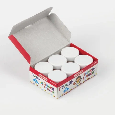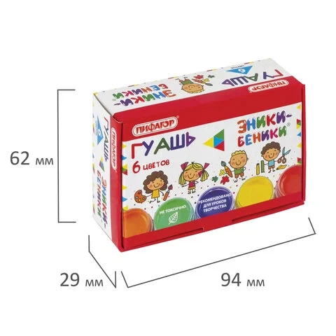 Гуашь ПИФАГОР ЭНИКИ-БЕНИКИ', 6 цветов по 10 мл, без кисти, картонная упаковка, 191329