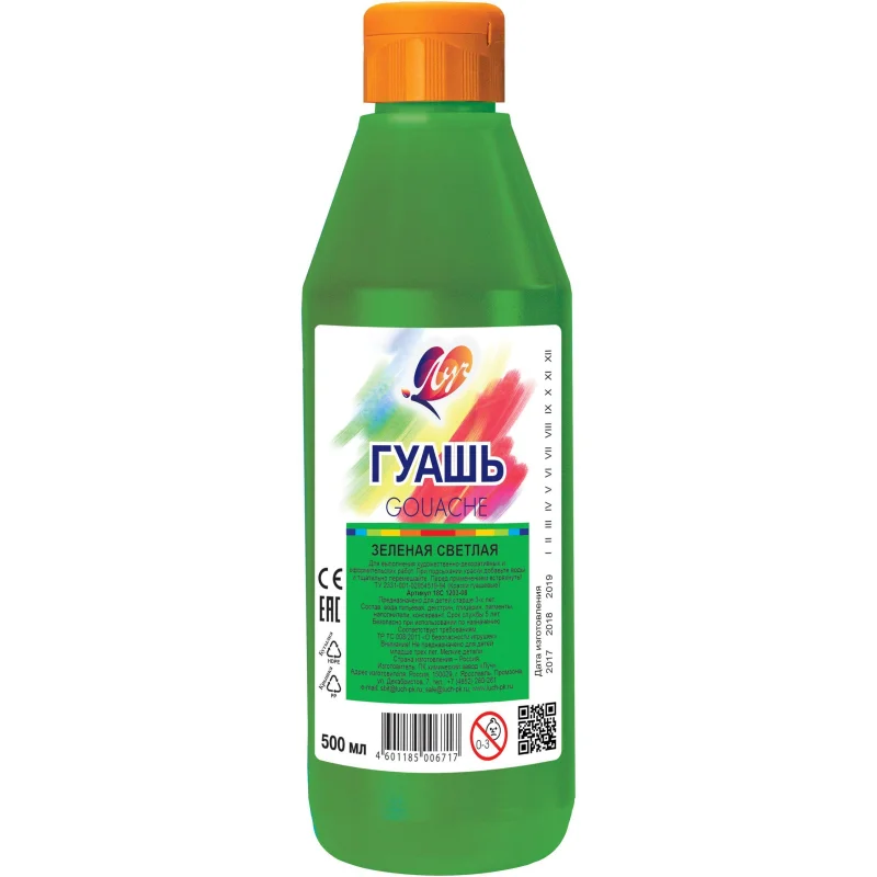 Гуашь Луч зеленая светлая 500 млПредназначена для детского творчества, художественных, оформите...