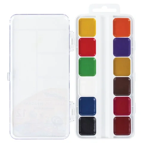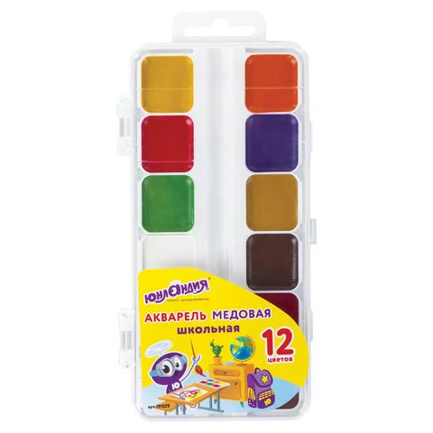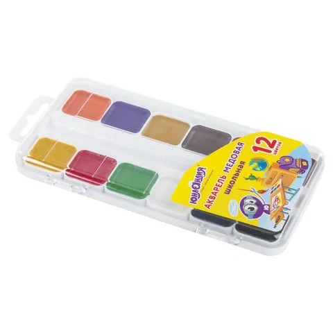 Краски акварельные ЮНЛАНДИЯ 'ШКОЛЬНЫЕ', медовые, 12 цветов, КЛАССИЧЕСКИЕ, пластик, 191529