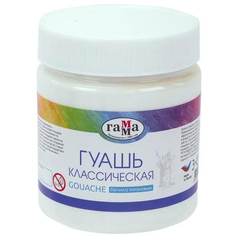 Гуашь ГАММА классическая 500 мл, белила титановые, 221060501