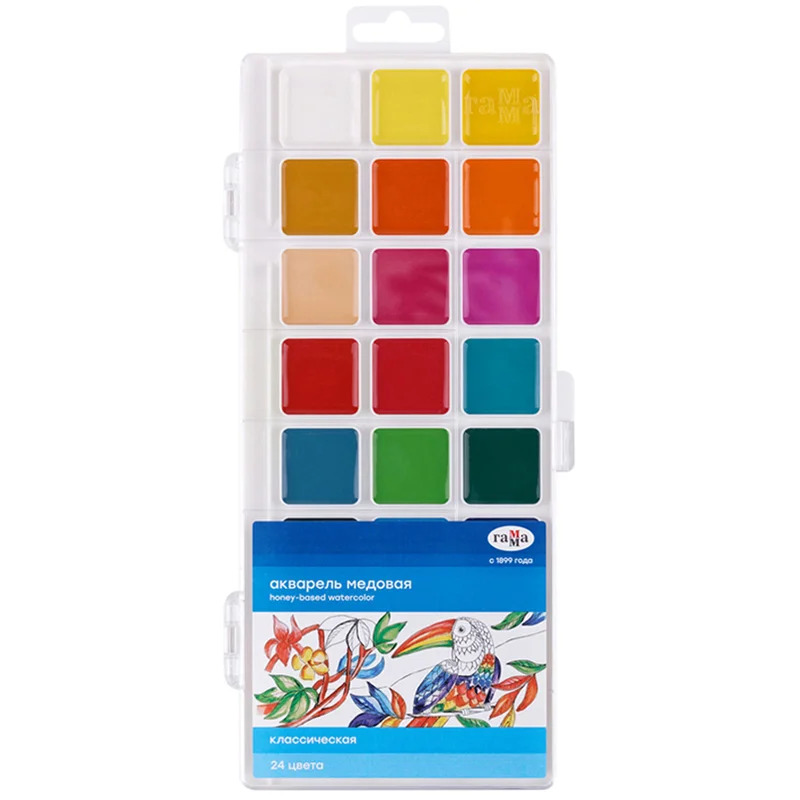 Акварель Гамма 'Классическая', медовая, 24 цвета, без кисти, пластик. упак., европодвес NEW
