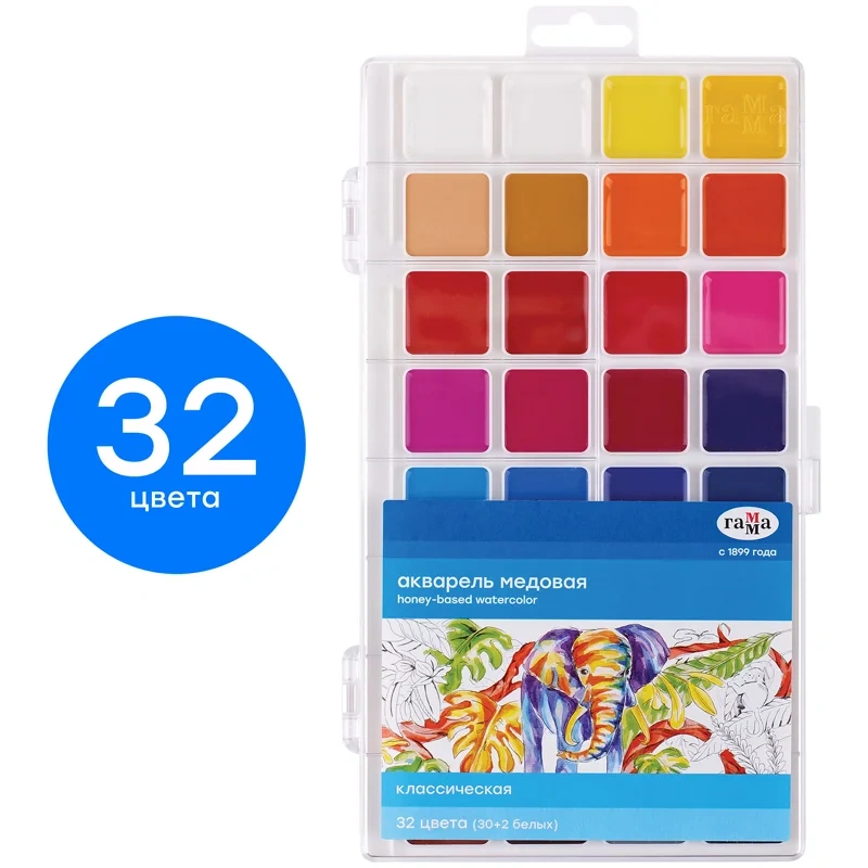 Акварель Гамма 'Классическая', медовая, 32 цвета, без кисти, пластик. упак., европодвес