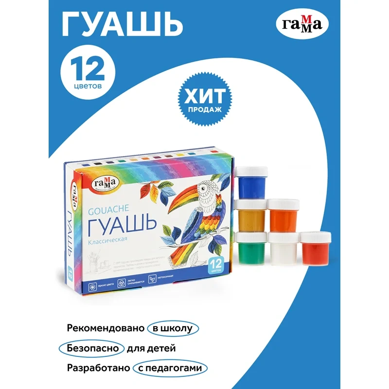 Гуашь ГАММА серии «Классическая» предназначена для творческих занятий в школе и дома. Краска произво...