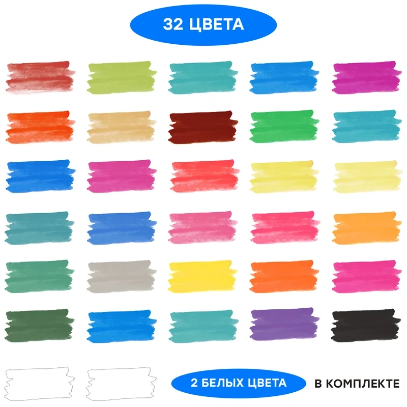 В наборе 16 ярких и насыщенных цветов: белый, красный, черный, синий, желтый, зеленый, коричневый, о...
