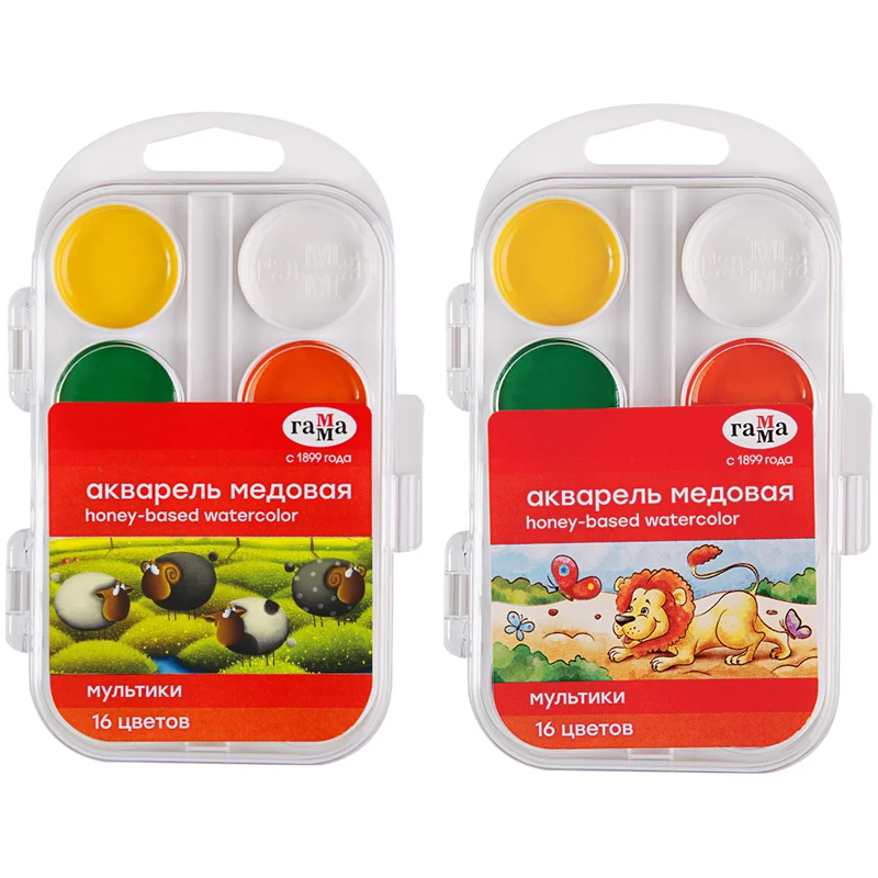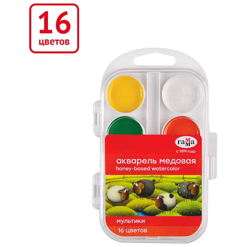 Акварель Гамма 'Мультики' NEW, медовая, 16 цветов, без кисти, пластик. упак., европодвес