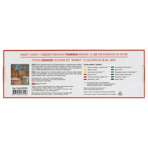Гуашь Невская Палитра Сонет 12 цветов по 40мл